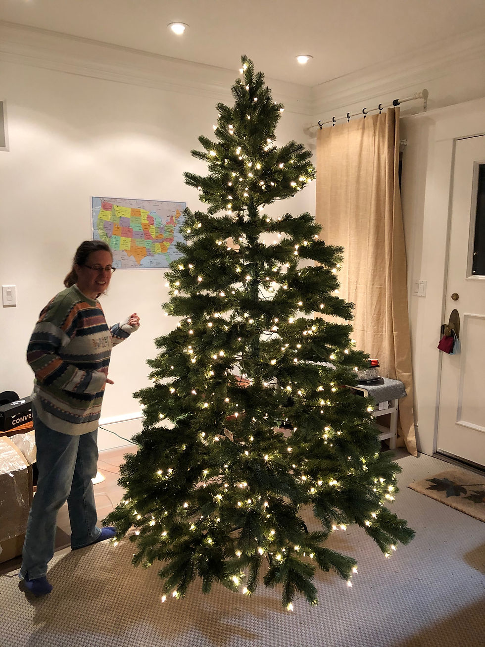 Now obviously our simple, puritanical European ways can't compete with this, but even I was somewhat bitten by the Christmas decoration bug. As I mentioned last week, some amount of external lighting and a massive tree is the minimal viable product for a domestic Christmas here, and that naive desire to just enjoy the holidays is something that infected me quicker than COVID at a Trump holiday party. I was tasked with decorating the tree, which you can see here in the early stages of implementation: